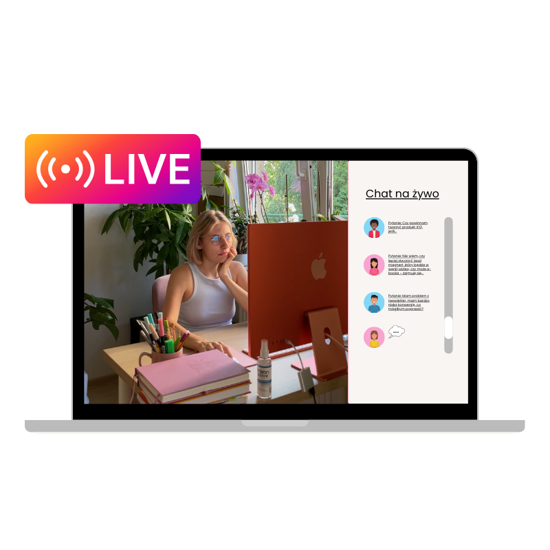 Udział w aż 6 spotkaniach na żywo (nagrywane) i możliwość zadawania pytań + chat do zadawania pytań przez 3 miesiące